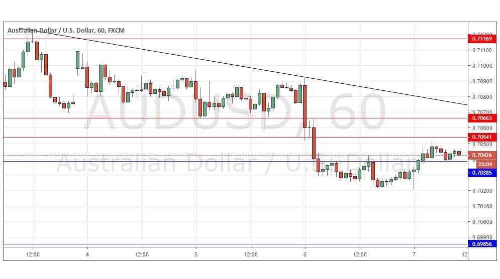 Short entry following some bearish price action on the H1 time frame immediately upon the next touch of 0.7054 or 0.7066.
