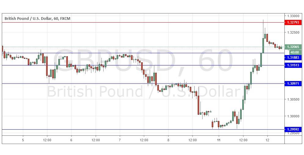 Go long following a bullish price action reversal on the H1 time frame immediately upon the next touch of 1.3188 or 1.3151 or 1.3097.