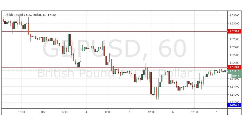 Go short following a bearish price action reversal on the H1 time frame immediately upon the next touch of 1.3188.