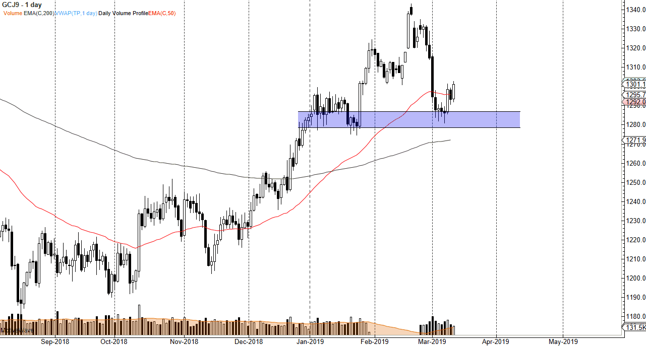 Short term back and forth trading with a slightly upward bias will more than likely continue to be the way we see this market move. The US dollar is expected to lose value going into later 2019, and that of course typically does good things for the Gold markets. With that, I don’t have any interest in shorting and I do think that the buyers will continue to push higher in $25 increments.