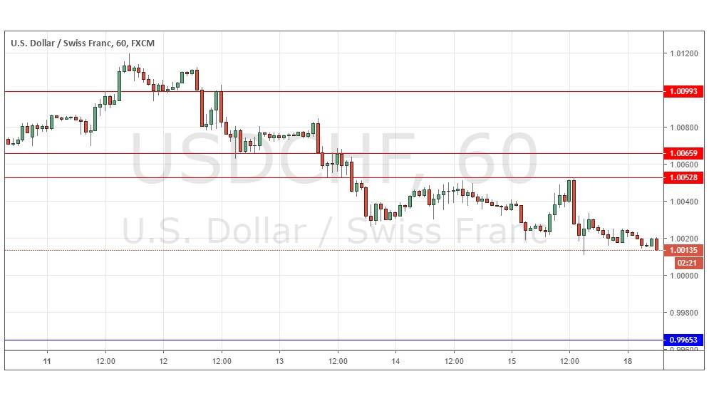 Go short following a bearish price action reversal upon the next touch of 1.0053 or 1.0066.