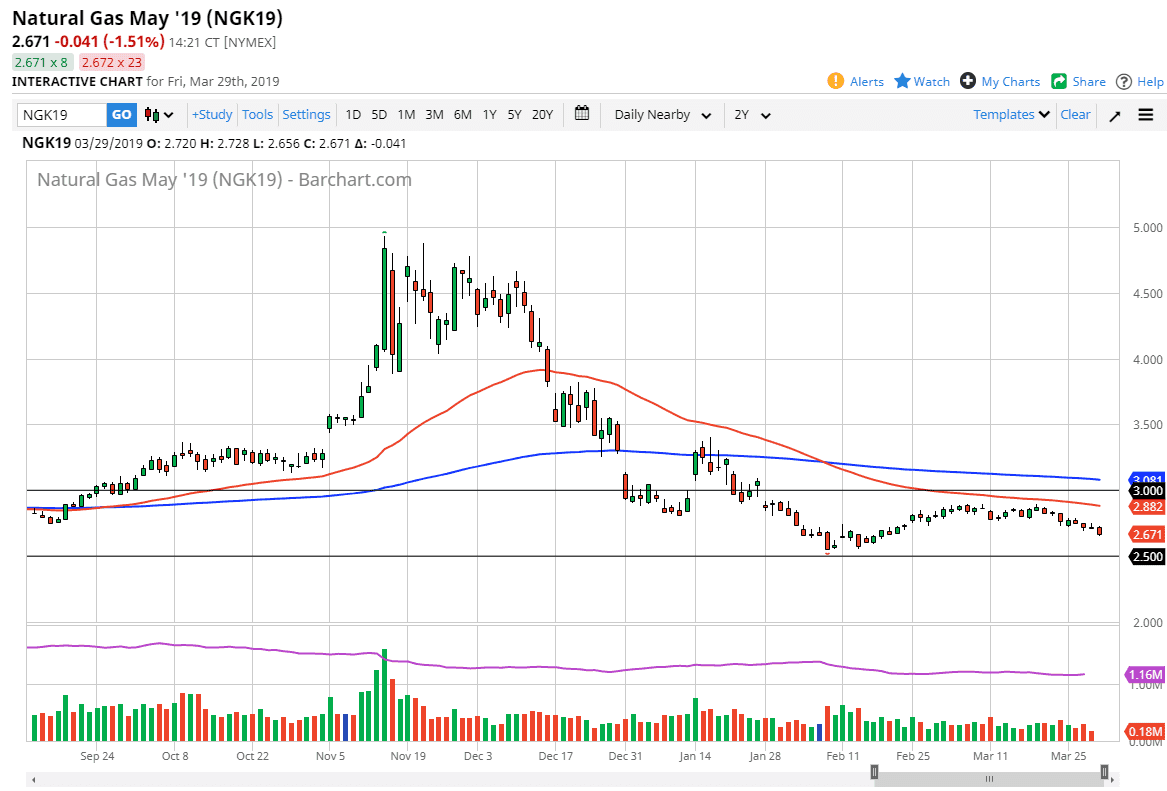 Natural gas markets continue to drift sideways with a downward slant. While I do not like natural gas from a longer-term standpoint and recognize that it is far too oversupplied to hold price for any length of time, I also recognize that there is significant support underneath. That support starts near the $2.60 level that extends down to the $2.50 level. With that in mind I’m looking for bounces or supportive candles to take advantage of closer to the $2.60 level. To the upside, I see massive resistance starting at the $2.90 level, so I’m more than willing to sell in that region as we show signs of weakness. As we are in the middle, I think it’s probably best to sit on the sidelines and wait until we reach one of those levels to put money to work.