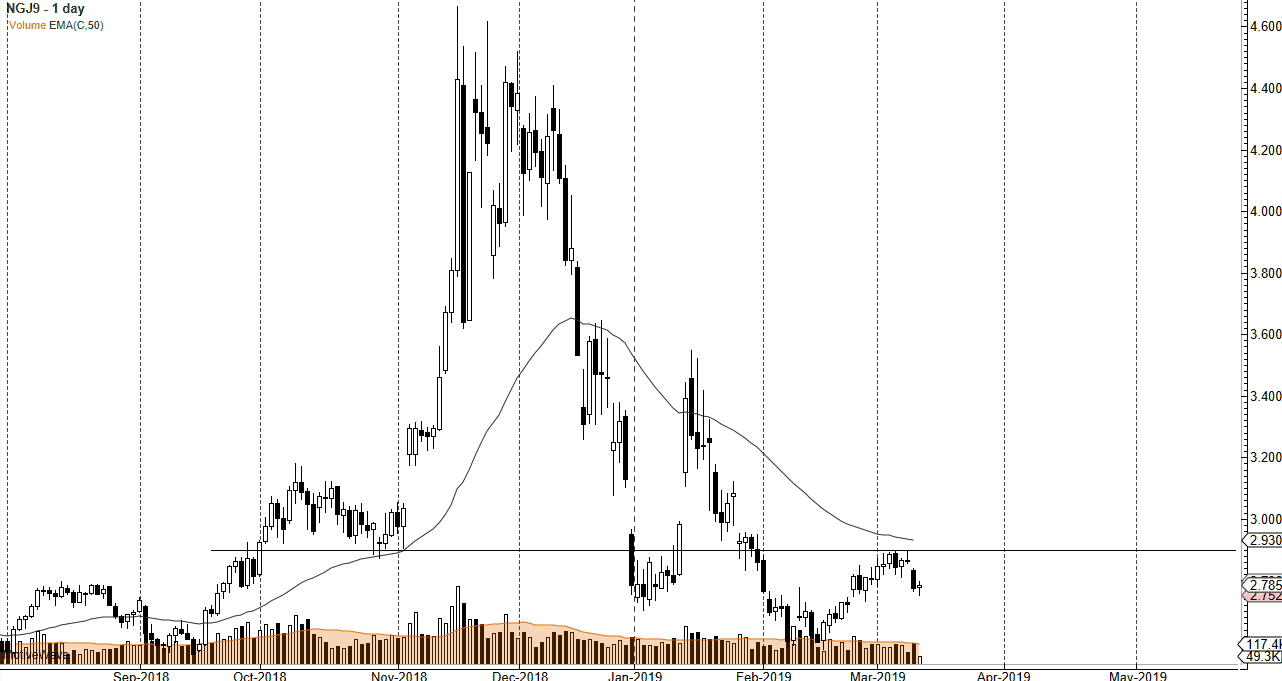 Natural gas markets initially fell during trading on Tuesday, but then turned around of form a slightly positive candle stick. We have a gap above the Monday candle stick that is still very much intact, and I believe that the $2.90 level is also major resistance that extends to the $3.00 handle. At this point, I’m waiting for some type of bounce that I can start selling, perhaps near the $2.85 level or above. The alternate scenario of course is that we break down below the bottom of the candle stick for the Tuesday session, which is also a reason to start selling. There is massive support underneath near the $2.50 level, so I don’t think we are going to break down below it and go extraordinarily lower than that.