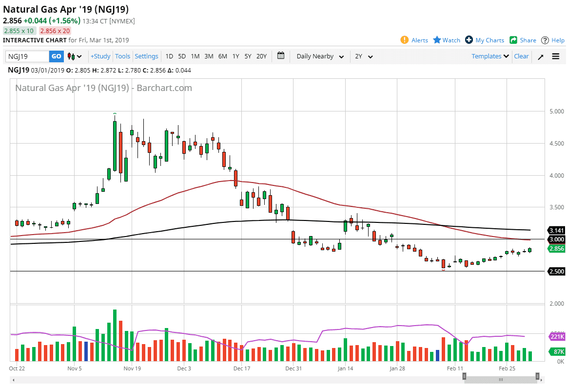 Natural gas markets rallied a bit during the trading session on Friday, as we continue to work our way towards the gap that is at the $3.00 level. Overall, if we rally towards that area I will be the first person to start selling at the signs of exhaustion. At that point, I believe that we could have a better move just waiting to happen. However, if we continue to go higher then I think we’re looking at an opportunity to start selling the market at $3.15, where we see the 200 day EMA. At this point, the market looks very likely to continue to focus on the longer-term fundamentals and right now I think what we are simply seeing is a bit of profit taking from those who had sold at such high levels. This is a market that is oversupplied, so therefore I have no interest in trying to buy this market.