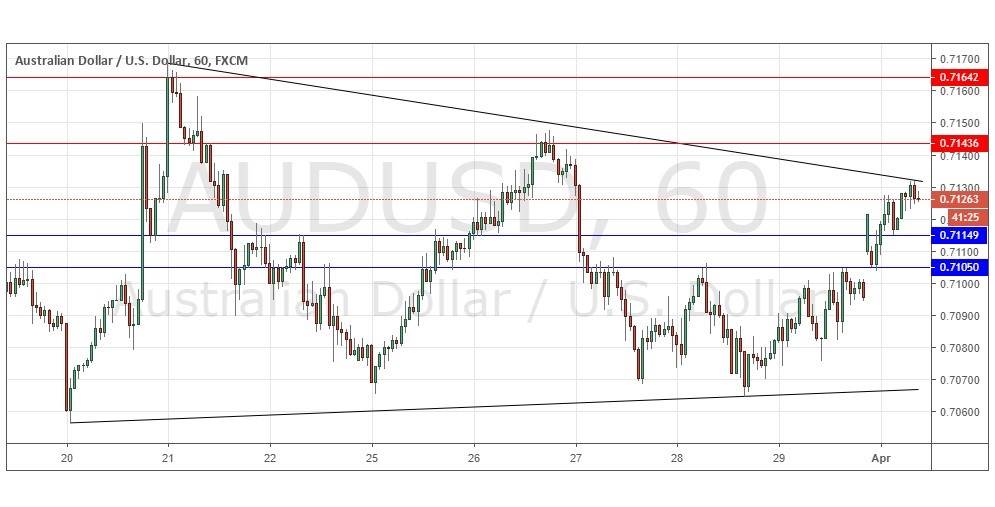 Yesterday’s signals produced a long trade from the bullish hourly candlestick which rejected the support level at 0.7105, which unfortunately just missed making the minimum 20 pips of profit.