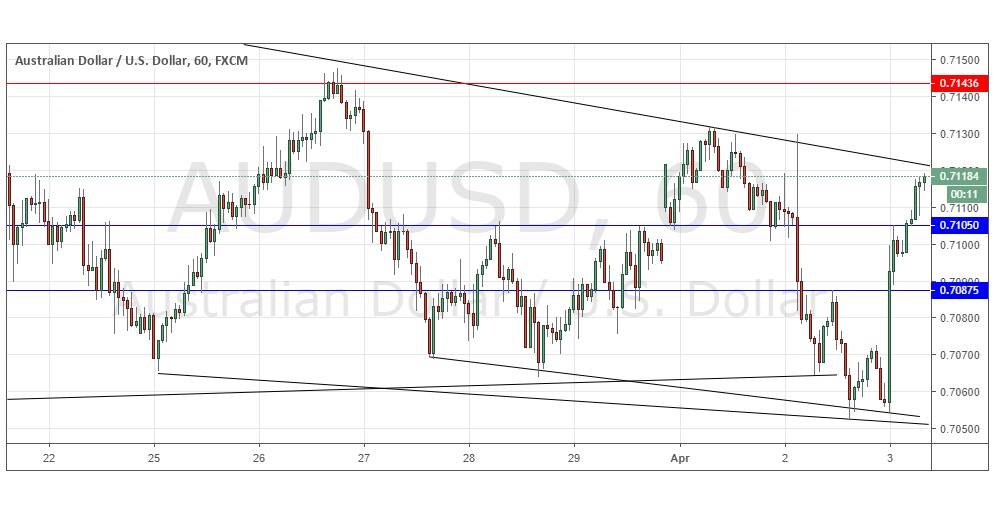 Yesterday’s signals were not triggered, as there was insufficiently bearish price action when 0.7105 was reached.