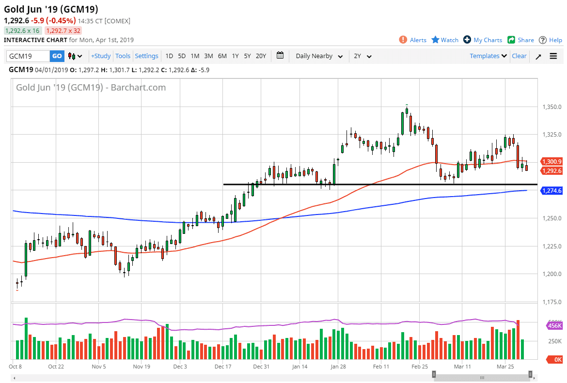 Gold markets initially tried to rally during the trading session on Monday, testing the 50 day EMA. The 50 day EMA sits right at the crucial $1300 level, an area that of course attracts a lot of interest. At this point, there is significant support below at the $1280 level, so I would pay attention to that area. If we were to break down below there, the 200 day EMA is just below that should cause a bit of support. Breaking down below there would of course be an extraordinarily negative sign and could send this market much lower.
