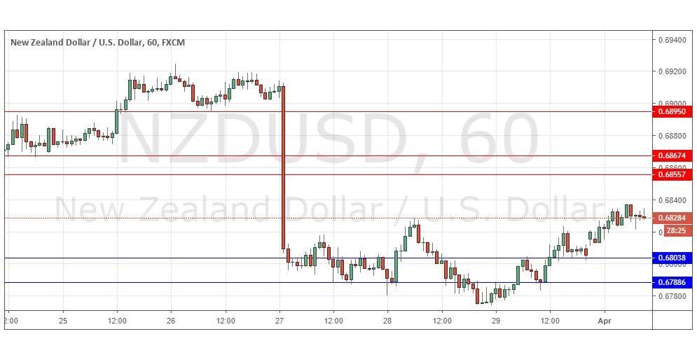 - Short entry following bearish price action on the H1 time frame immediately upon the next touch of 0.6856, 0.6867, or 0.6895.