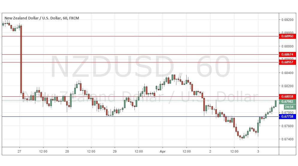 Last Monday’s signals were not triggered as there was insufficiently bullish price action at 0.6804 and no price action at 0.6789.