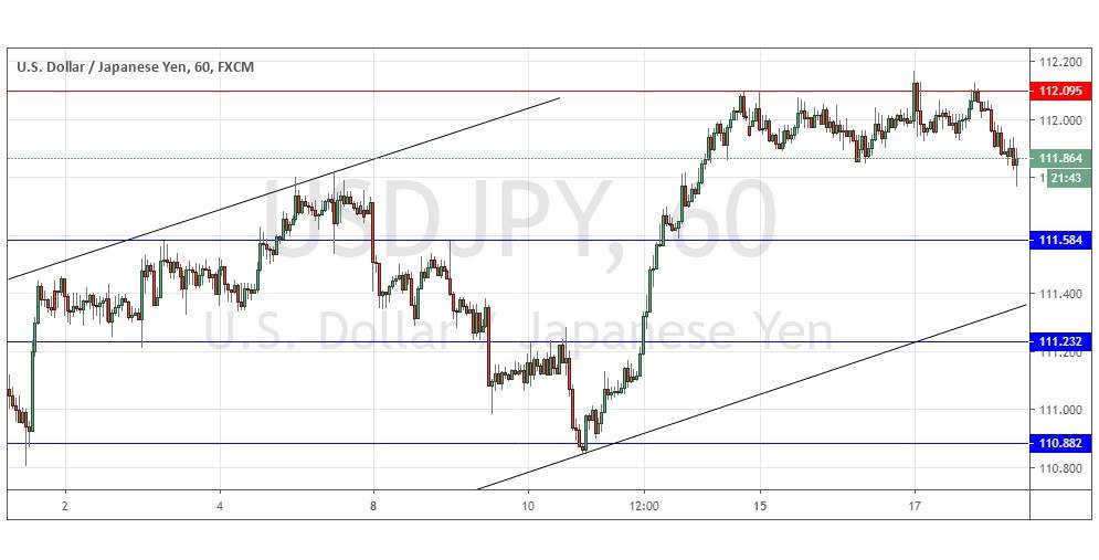 The alternative scenario is that the double top at 112.10 was the beginning of a further downwards movement. There may be new support forming now at 111.80 so if that breaks down it would suggest the price will reach 111.58. Bears should not be confident until the supportive trend line shown within the price chart below breaks down.