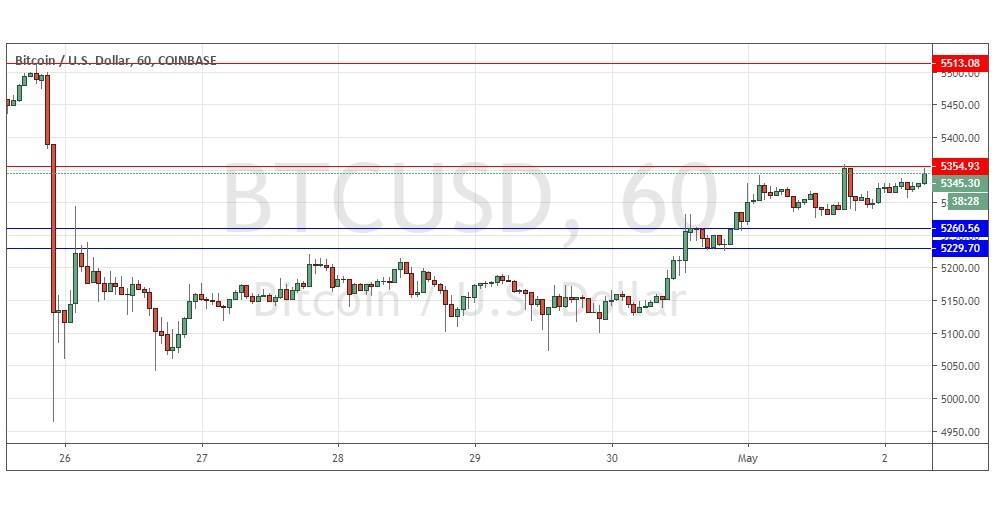 I was correct to make a bullish call as the price has continued to rise, although it has only risen by a very small amount. The nearby resistance at $5,355 has held so far and looks likely to be today pivotal point.