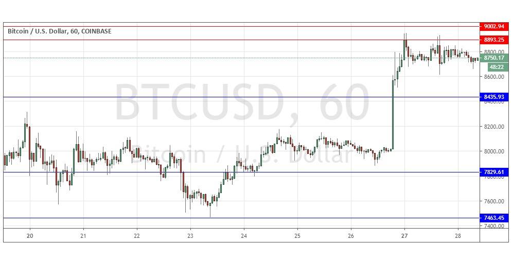 Yesterday’s signals were not triggered as the bearish price action at $8,893 was not sufficiently bearish to trigger a short trade entry.