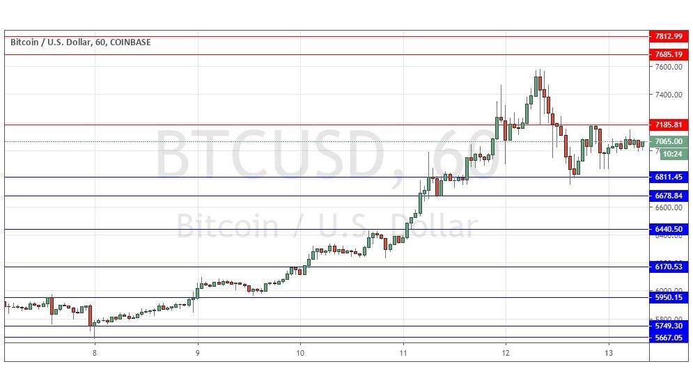 Go short after a bearish price action reversal on the H1 time frame following the next touch of $7,186 or $7,685.