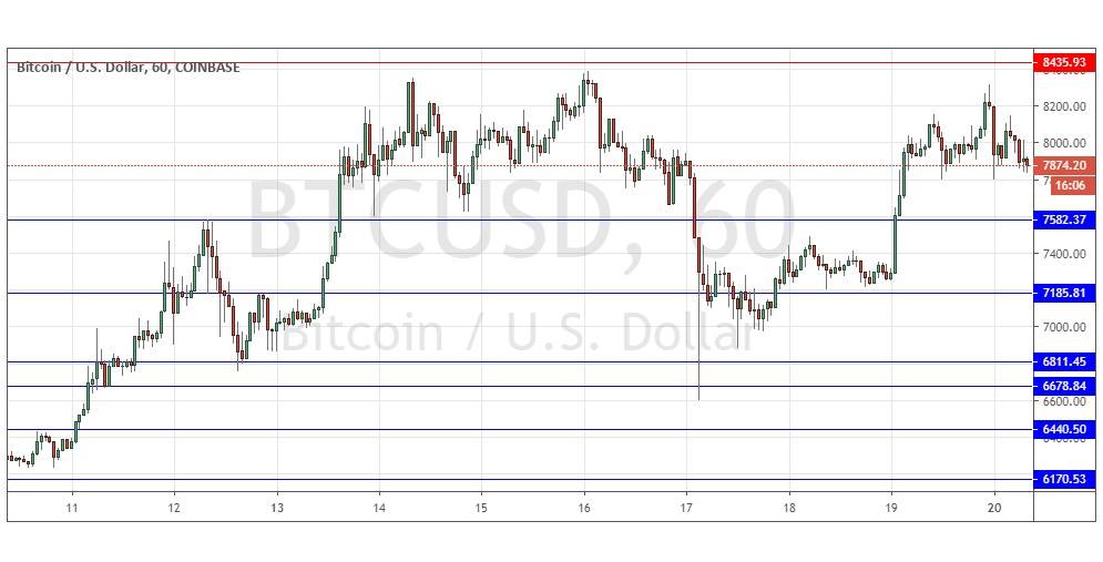 I wrote last Thursday that it made sense to remain bullish, but a period of consolidation or a deeper retracement were becoming more likely scenarios. I was ready to take a bullish bias following a retracement to and bullish bounce at the nearby support level of $7,582.