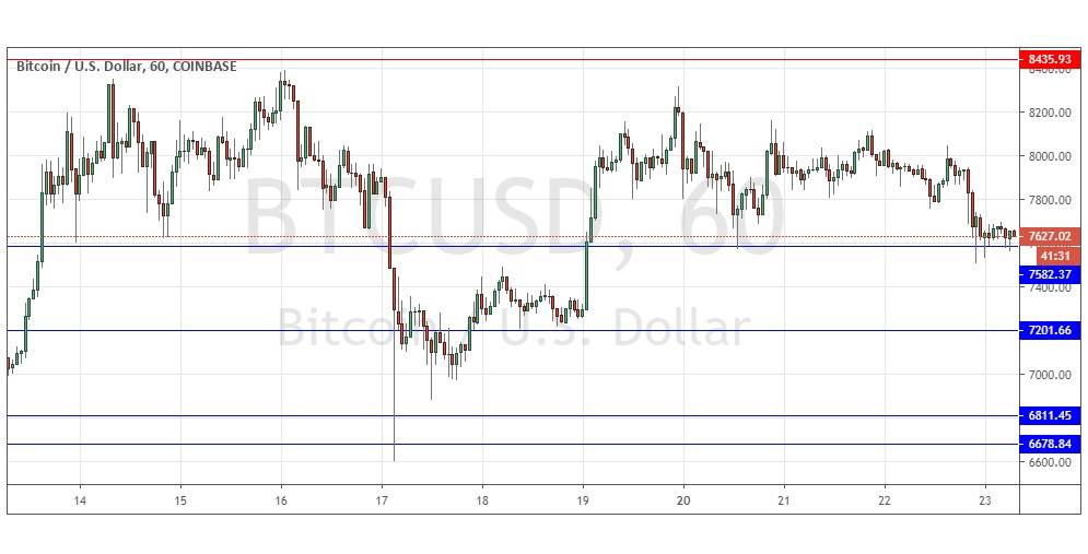 Yesterday’s signals may have produced a long trade entry at $7,582 but the price action there has not truly been quick and bullish enough to justify such an entry. If a trade has been taken here, it does not look now as if it going to be a winning trade.