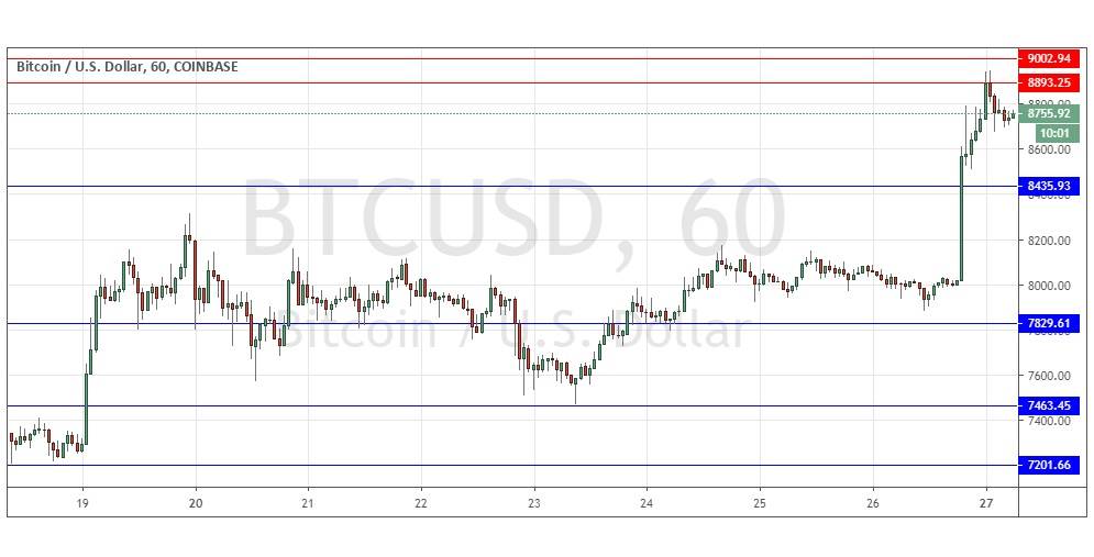 I would take a bullish bias today if there were a strong bounce at the support level of $8,436.