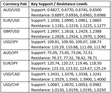 We teach that trades should be entered and exited at or very close to key support and resistance levels. There are certain key support and resistance levels that should be watched on the more popular currency pairs this week, which might result in either reversals or breakouts: