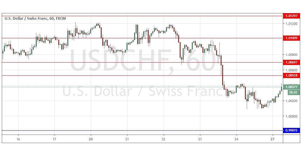Risk sentiment is recovering today, which suggests the price is going to move up as the CHF is more of a safe haven than the USD, yet the real action in today’s currency market is likely to be in pairs between risky and safe haven currencies, which is elsewhere. Another factor is that markets are closed in London and New York so there is likely to be only little movement here today. The best trade opportunity is quite likely to be scalping short off the resistance level of 1.0053 if it is reached later.