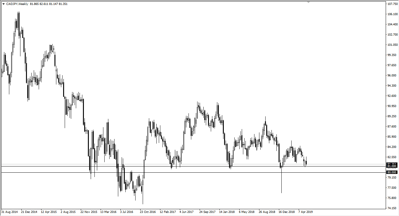 The Canadian dollar initially tried to rally against the Japanese yen during the week but has pulled back rather significantly. By forming the candle stick that it has, it looks as if we are trying to break through major support. That support extends from 81 down to the 80 handle. I think if we break down through that level, we could go as low as 77. Keep in mind that this pair tends to follow oil, and oil looks like it’s being threatened at this point. It’s very possible that we break down. To the upside though, I believe that the 83 handle will continue to be major resistance.