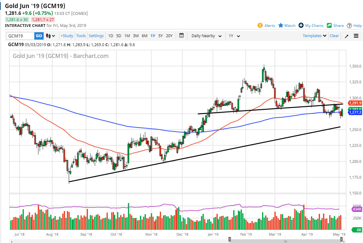 There is a bit of conflicting technical information here though, as the 200 day EMA is sitting in this general vicinity, and of course we have seen the $1270 level offer support as well. Ultimately, if we do break down below the $1270 level, I think that the market will probably go down towards the uptrend line underneath, which is a bit closer to the $1250 level.