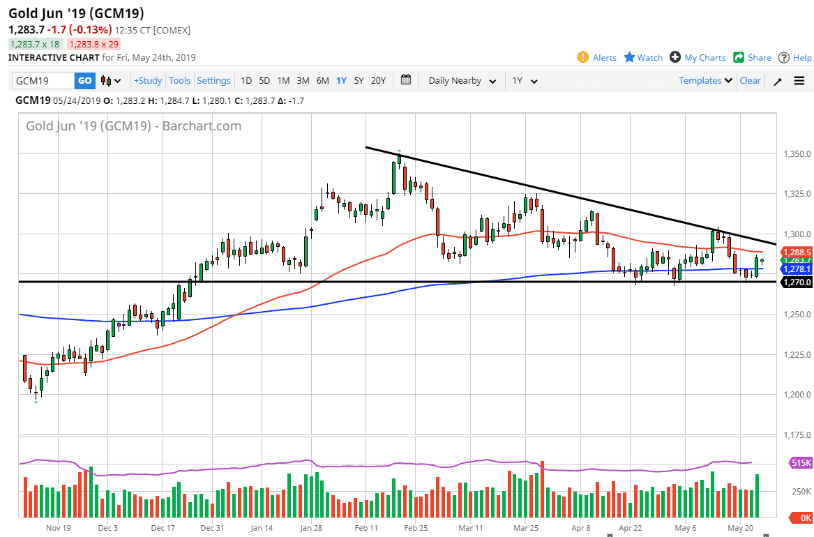 While I already mentioned that the Gold markets went back and forth all day, I don’t think that this is going to change because there wouldn’t have been much in the way of volume as people were more worried about the holiday weekend. Volume is very thin, especially considering just how volume as the Thursday session was in comparison. There is a lot of fear in the market so that could throw Gold markets around quite drastically, especially considering that the US and China can get it together.