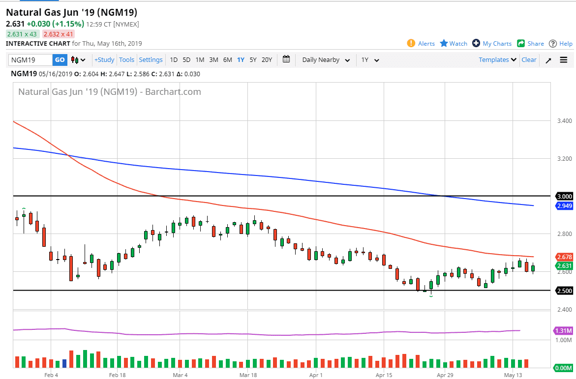 Natural gas markets rallied during the day as well, using the $2.60 level as a bit of a springboard. The inventory number wasn’t as bad as a lot of people expected, so they gave natural gas a little bit of hope. Ultimately though, this is a market that is in the wrong time of year to expect a lot of strength, as drilling season will fill those stockpiles rather quickly. Short-term rallies are selling opportunities, but this market may move in what is essentially slow-motion at this point.