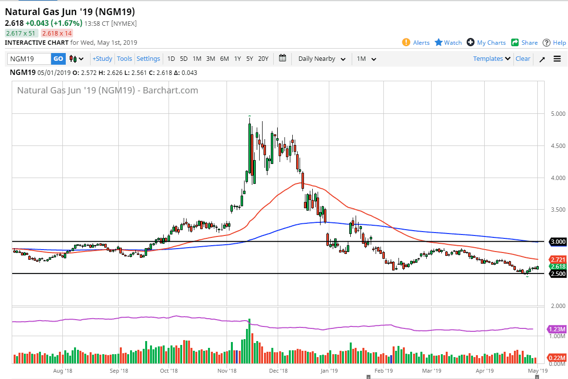 Natural gas markets rallied during the trading session on Wednesday, as we continue to bounce from extreme and oversold condition. The $2.50 level underneath is significantly supportive, as it is a large, round, psychologically significant figure, and one that we have been bouncing from for some time. With that in the back of our mind, it’s easy to see that the market was due for a bounce. However, the $2.70 level offers resistance on short-term charts, and of course we have the resistance barrier built and at the 50 day EMA which is just above there. Ultimately, this is a market that offers short-term buying opportunities but it’s much easier to simply sell as soon as markets get a little ahead of themselves.