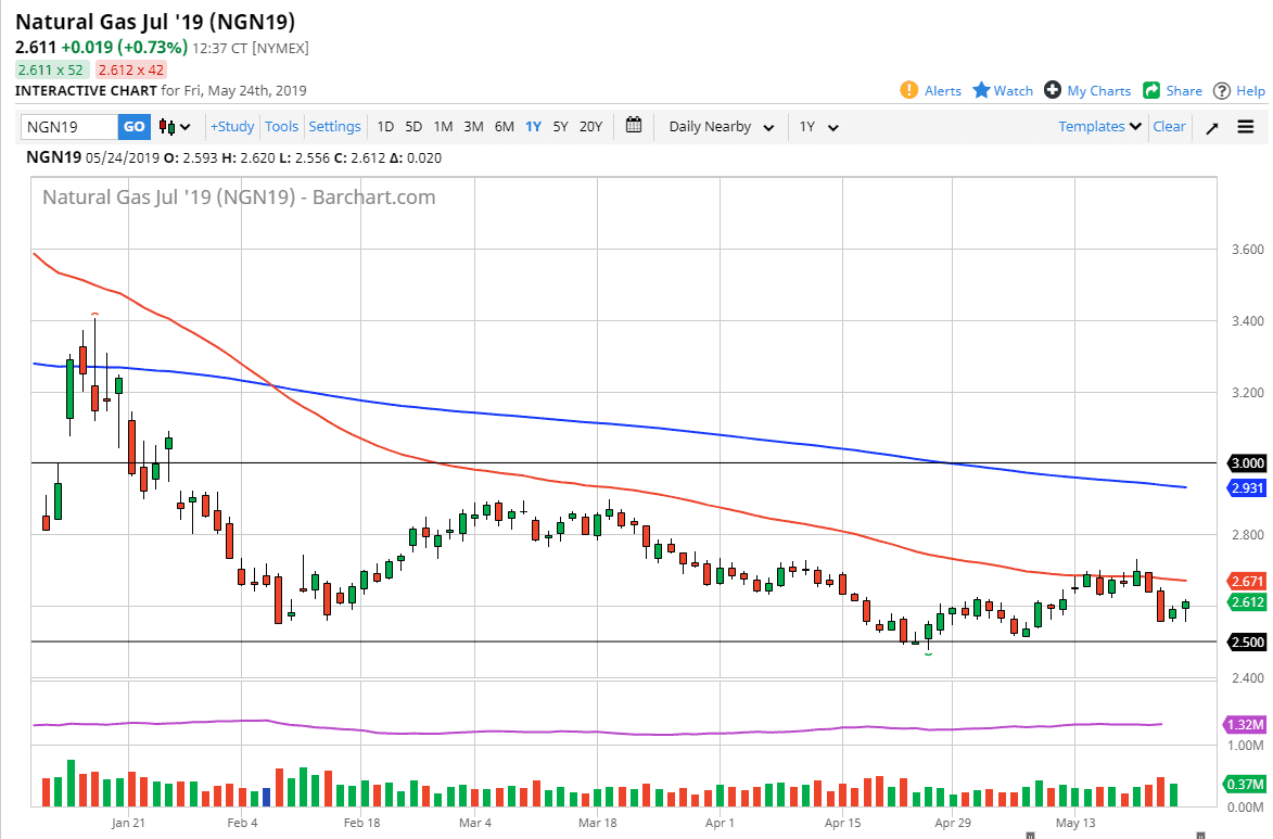 Natural gas markets initially pulled back a bit but then turned around to show signs of life on Friday. At this point in time though, we are at extreme lows so it makes sense that sellers will probably come back in on any type of pop. The 50 day EMA is near the $2.67 level, so I suspect that given enough time we will see sellers in that general vicinity, perhaps extending to the $2.70 level. Otherwise, if we can break above the level then it’s likely that the market would go to the $2.80 level, perhaps even the $2.90 level after that.
