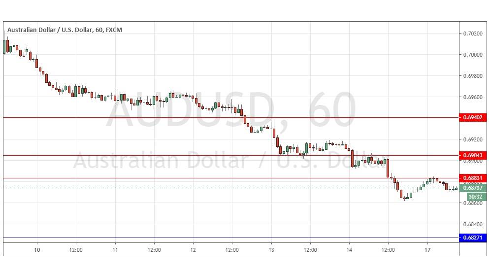 Short entry following some bearish price action on the H1 time frame immediately upon the next touch of 0.6883 or 0.6904.