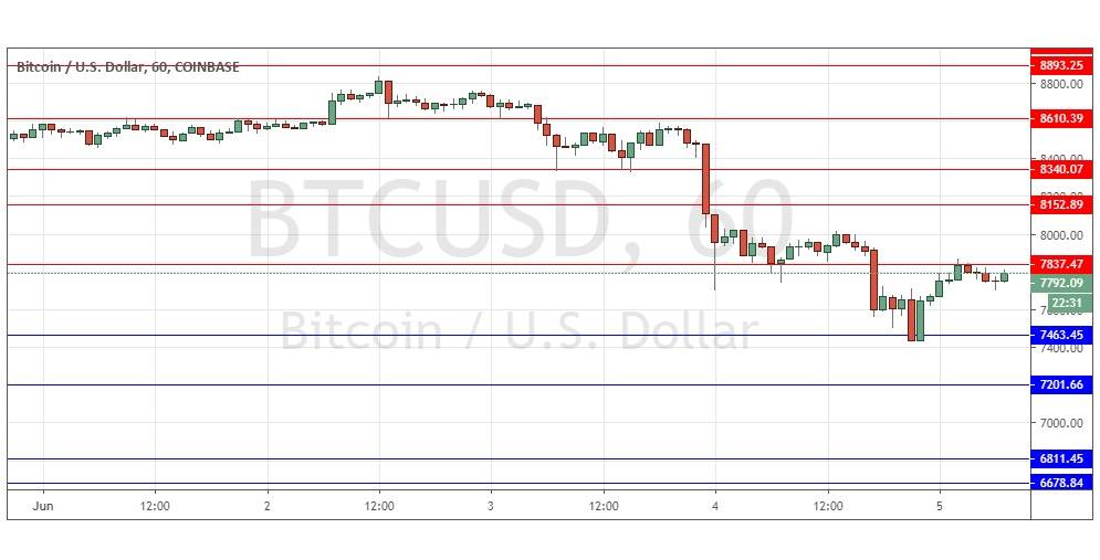 I wrote yesterday that the bears had won out, pushing the price down quite far, although the support level at $7,830 seemed to be holding. As such, a long from this supportive area at $7,830 may be interesting. It was likely to be the day’s pivotal level and if the price can get established below it, I think that would be a bearish sign and suggest we are not going to see $9,000 again soon.