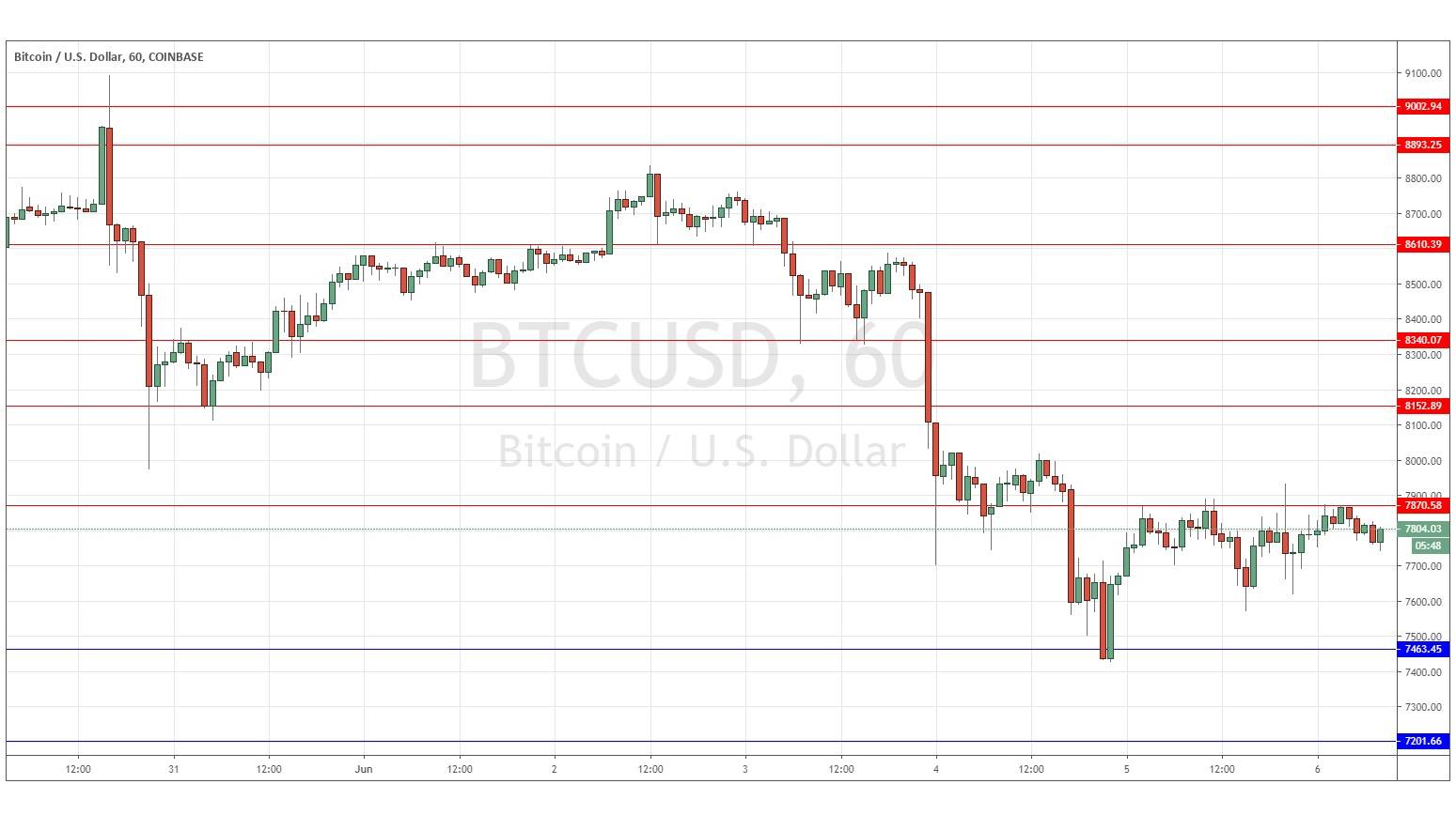 There is no real change to the picture, everything will still probably depend upon $7,871 being breached, which would create a more bullish picture and maybe be the catalyst for a resumption of the strong long-term bullish trend. I would take a bullish bias if the price can trade above $7,871 for a couple of hours consecutively later.