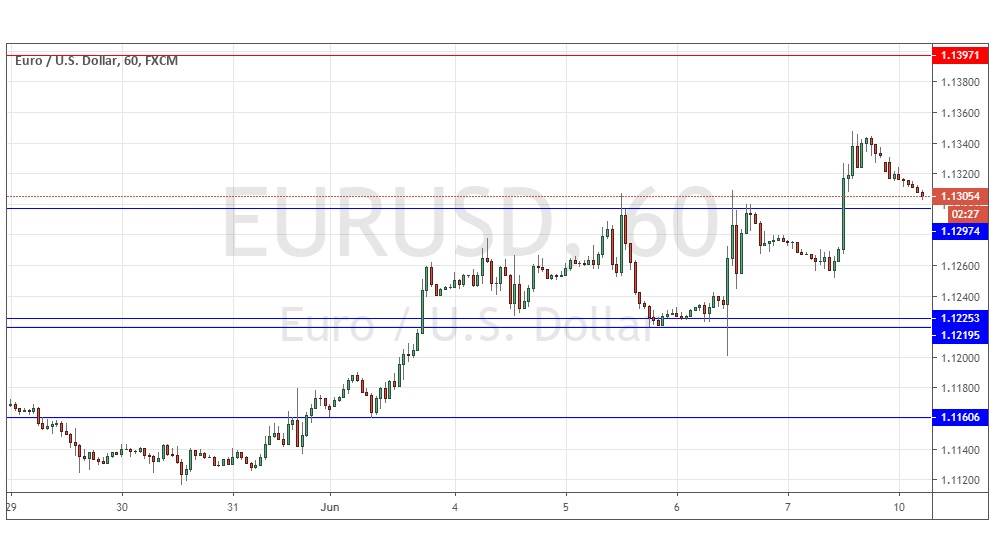 Last Thursday’s signals produced a profitable long trade from the large bullish outside candlestick which rejected both of the support levels, at 1.1225 and 1.1220.