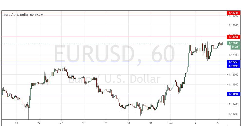 Yesterday’s signals produced a profitable short trade from the bearish pin candlestick which rejected the resistance level identified at 1.1277.