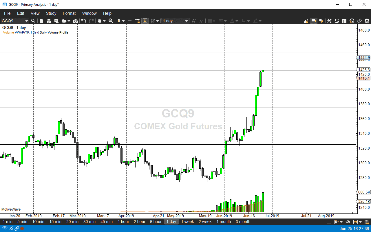 At this point only the true foolhardy are out there trying to buy this market, because you have to wonder who will be left to start to pick it up from here. We would need to see some type of major shock to the system to see Gold go higher from here, at least not without some type of major pullback. If we do pull back from here, it’s likely that we will find buyers eventually, because we know that the Federal Reserve is stepping away from a hawkish stance, and that of course is very negative for the dollar, which typically is good for gold. Beyond that, the ECB is also doing the same thing, so it’s very likely that the precious metals markets continue to take off from here. However, nothing can go in the same direction forever, as most of you out there who trade in Bitcoin couple of years ago found out. This is the same situation, although the fundamentals are still good for gold.