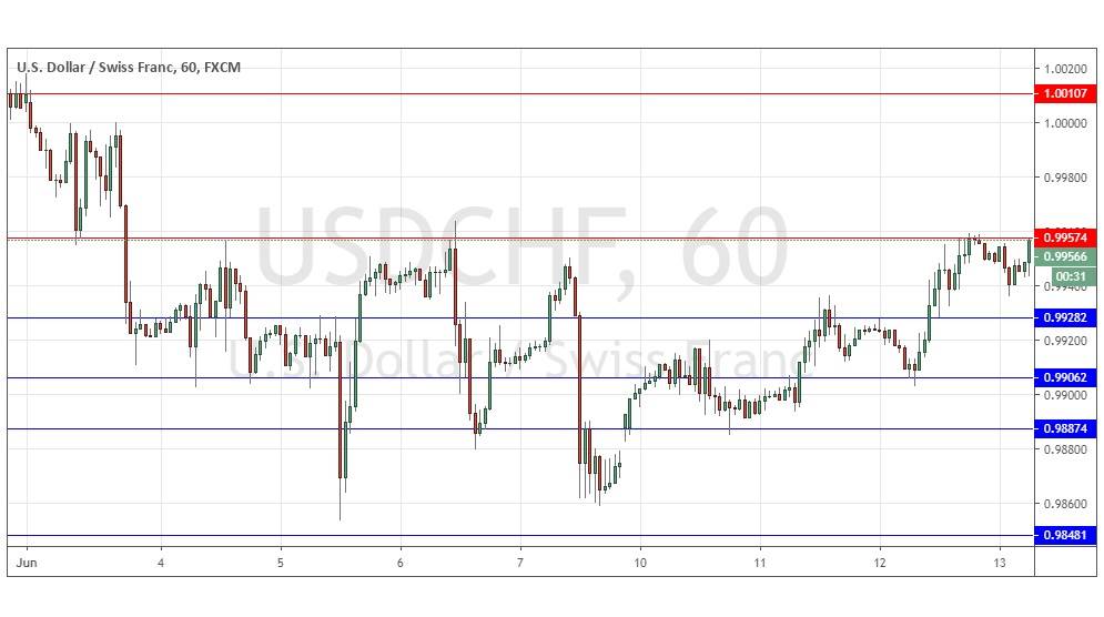 Yesterday’s signals produced a losing short trade from the bearish rejection of the resistance level at 0.9955.