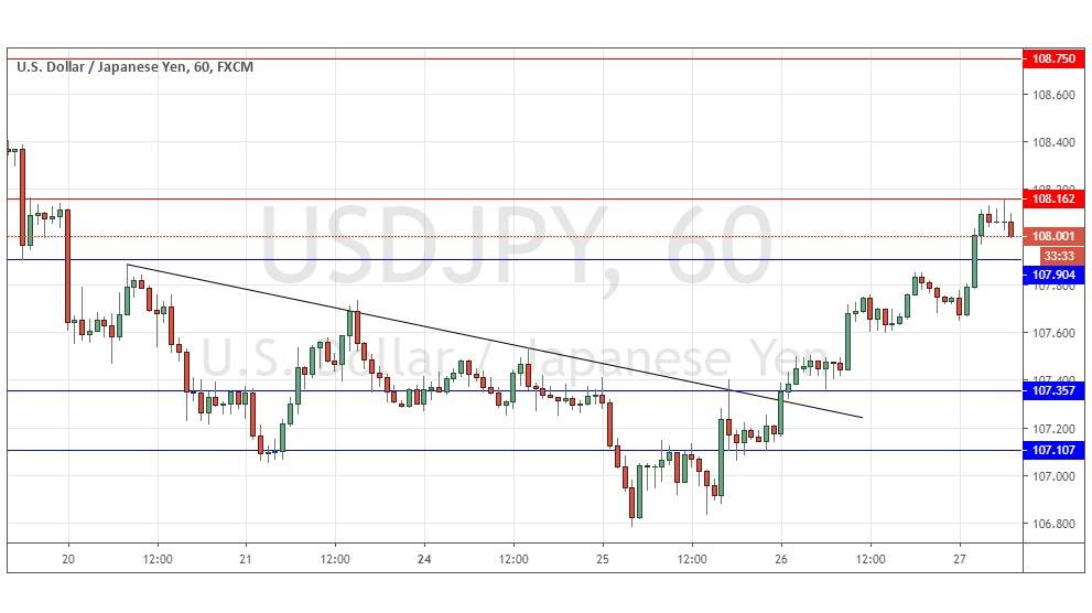 Yesterday’s signals were not triggered, as there was no bearish price action at 107.90.