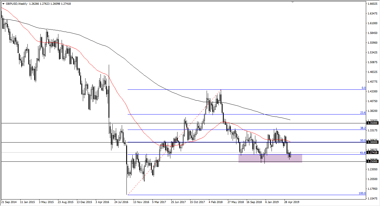 The British pound rallied during the week, breaking above the 1.27 level, and it looks as if we are going to go to the 1.28 level, then possibly the 1.30 level after that. This is an area that would cause quite a bit more psychological resistance, but it does look as if the British pound is trying to find its footing in this area. The 1.25 level underneath is massive support, so I think it’s only a matter time before buyers would come back at this point. That being said, there is a bit of a headwind due to the Brexit nonsense going on. In the short term though, it’s very likely we see buyers.