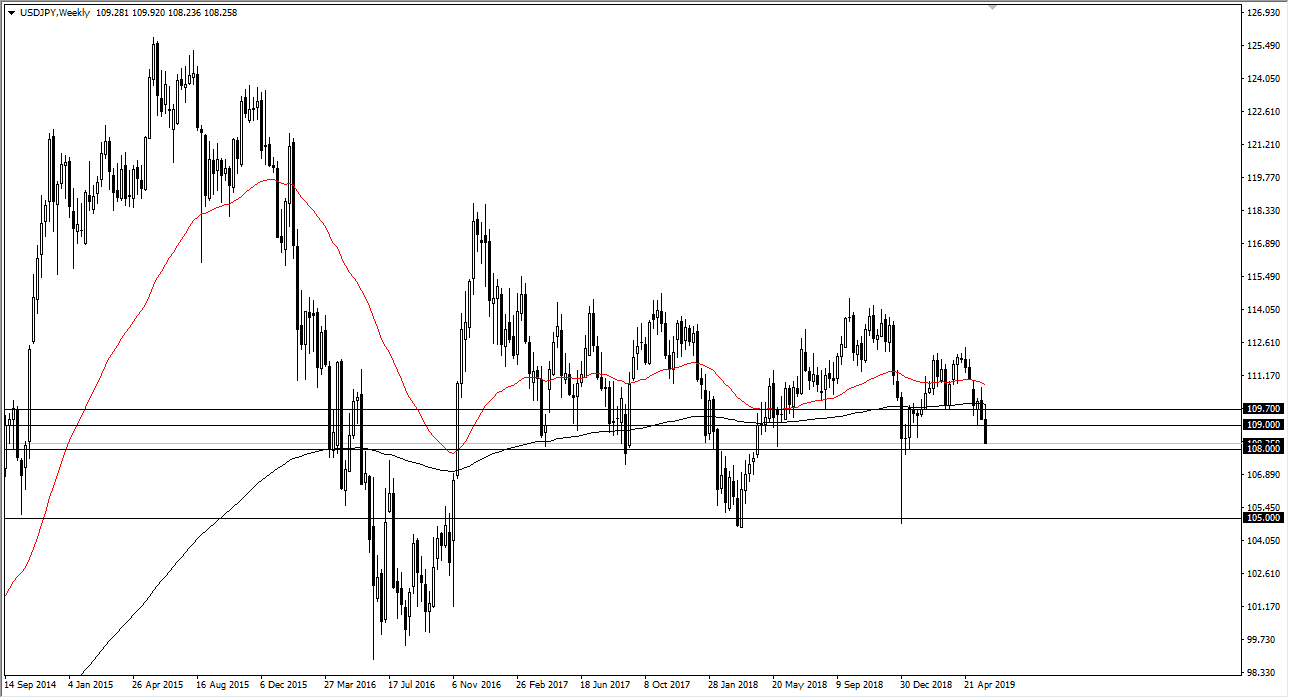 The US dollar initially tried to rally during the week but collapsed against the Japanese yen on Friday. The fact that we are closing at the very bottom of the weekly candle does in fact suggest that we are going to continue to go lower. I anticipate that rallies that show signs of exhaustion, especially near the ¥109 level, could be a nice opportunity to short this market. The alternate scenario is that we simply fall through the ¥108 support level, opening up the door to the ¥105 level.