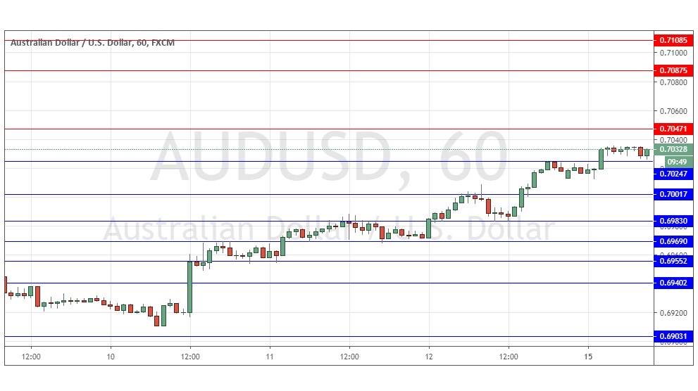 Short entry following some bearish price action on the H1 time frame immediately upon the next touch of 0.7047 or 0.7088.