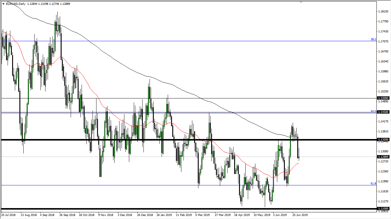 The Federal Reserve is looking to cut interest rates, and that should continue to put bearish pressure on the US dollar, but ultimately the European Union looks economically sick as well. I think this is going to be the biggest problem trading this pair, you are simply looking at a couple of central banks that are going to be dovish to say the least. There is no reason to think that the Euro should explode to the upside, but it does look like we are forming some type of longer-term bottoming pattern.