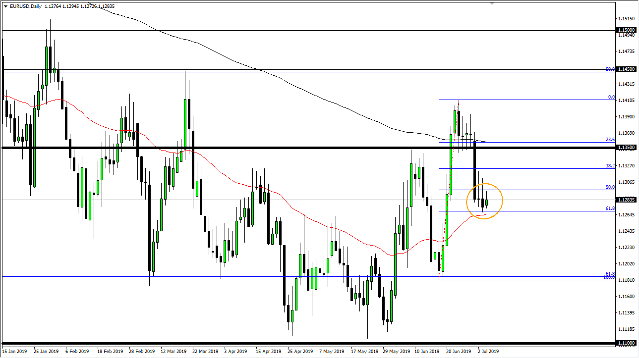 If the jobs number is incredibly weak, that puts more pressure on the Federal Reserve to cut interest rates, which of course is negative for the US dollar. However, if the jobs number is strong, we may have a short-term pullback but then traders will start to think about the Federal Reserve cutting interest rates later this month, which is priced in at roughly a 100% chance. In other words, I do think that we turn around given enough time. That being said, if we do close below the 50 day EMA, it probably sends this market down to the 1.12 level, which has been supportive in the past. Overall though, I think we are trying to build up the necessary momentum to turn around and shoot higher. Breaking above those candlesticks would of course be a sign of increased momentum and a potential rounded bottom be informed yet again.