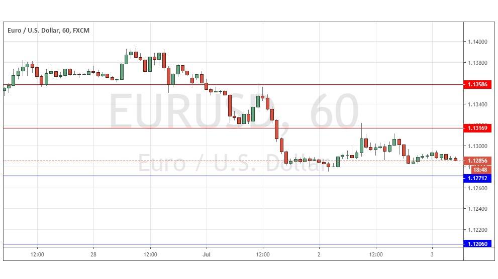 Yesterday’s signals produced a short trade from the bearish rejection of the resistance level at 1.1317. The trade is in floating profit but looks relatively uncertain so it might be wise to close it for a few positive pips.