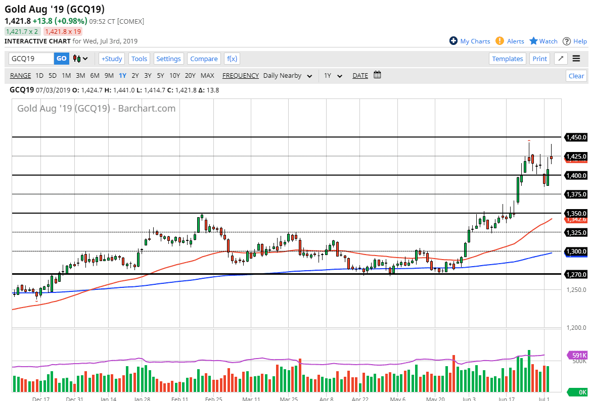 The Gold markets gapped higher to kick off the day on Wednesday, before pulling back and then shooting straight up in the air again. It by doing so, the market has formed a bit of a shooting star at highs, and therefore it suggests to me that the Gold markets are quite ready to break out above to a fresh, new highs again. That being the case, this is a market that continues to look bullish longer-term, but I think there are a lot of buyers underneath just waiting to get involved. In other words, I think a pullback is probably necessary, and therefore looking for value is probably the way to play this market.