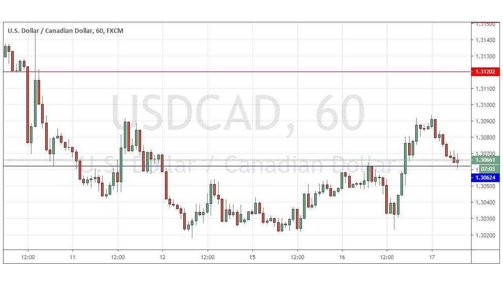 A long trade at a firm bounce here could be a good idea, but it may not go very far after the Chair of the Federal Reverse signalled monetary accommodation yesterday, so a conservative profit target would probably be wise.USDCADThere is nothing of high importance due today regarding the USD. Concerning the CAD, there will be a release of CPI (inflation) data at 1:30pm London time.