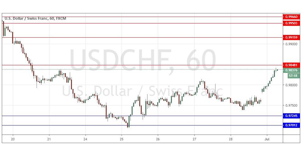 Today’s USD/CHF Signals