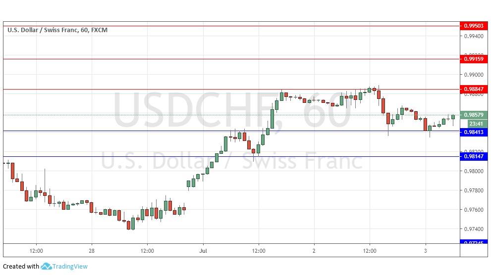 I wrote yesterday that I would take a bullish bias at the support level of 0.9848 if there was a retracement and strong bullish bounce there. This did not happen until after the London close. The support there is holding but needs to be adjusted down to 0.9841. I see this currency pair as now likely to behave very similarly to the EUR/USD currency pair. The price is well within its long-term range, so the bigger picture is still a ranging price. The short-term price action at the time of writing is weakly bullish.