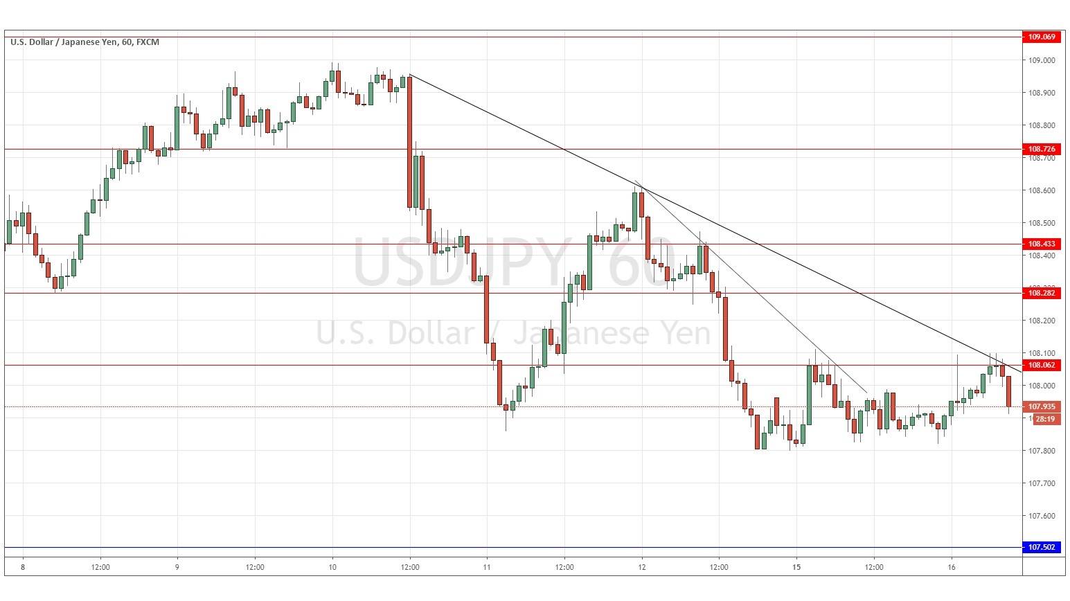 Yesterday’s signals could have produced a short trade from the bearish rejection of the resistance level identified at 108.06, which is still in play.