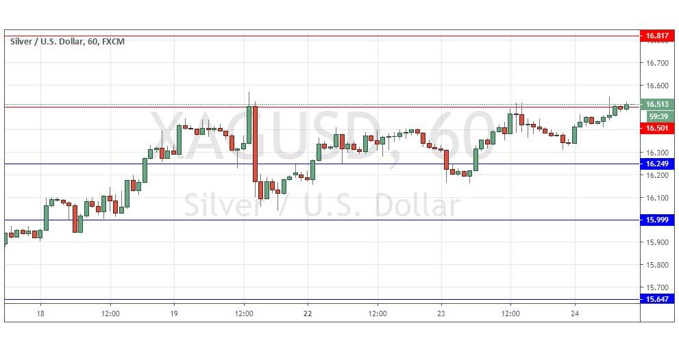 Silver seemed well positioned to make another upwards thrust on Monday after reaching a 1-year high above the big half number at $16.50 at the end of the previous week. However, that day the price reacted bearishly and appeared to break below the support at $16.25. A little surprisingly, the price made a strong recovery over the next day and is now struggling to really get established above the resistance at $16.50 which is getting slowly eaten up and invalidated. If the price holds up and then breaks really solidly above $16.50 in the early part of the New York session, I would be very bullish and look to trade long up to at least $16.75 and possibly even higher than that.