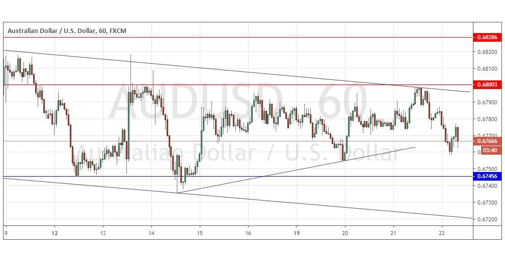 Yesterday’s signals were not triggered as the price never quite reached the resistance level at 0.6800.