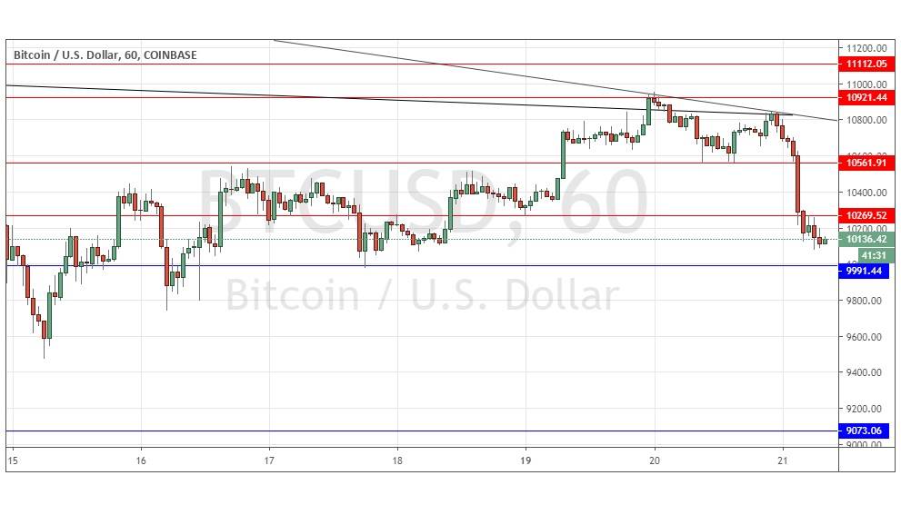 The picture now is more bearish, and it looks as if $9,991 is going to be today’s pivotal point. If that level breaks down, we could see a strong and sharp fall to the $9,000 area, so I would take a bearish bias today if we see some meaningful bearish momentum upon the break, at least to the next support level just above $9,000.